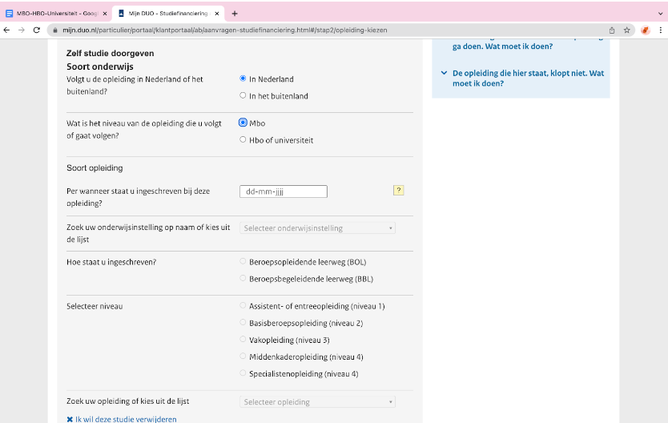 Overbrugging: Bir üniversite eğitimden diğer eğitime geçiş sürecinde arada zaman varsa, bu aylar içinde studiefinancering’e başvurabilirsiniz. Ama bu sizin için geçerli değildir. Sadece MBO, HBO ve WO içerisinde değişiklik yapacaklar için geçerlidir.